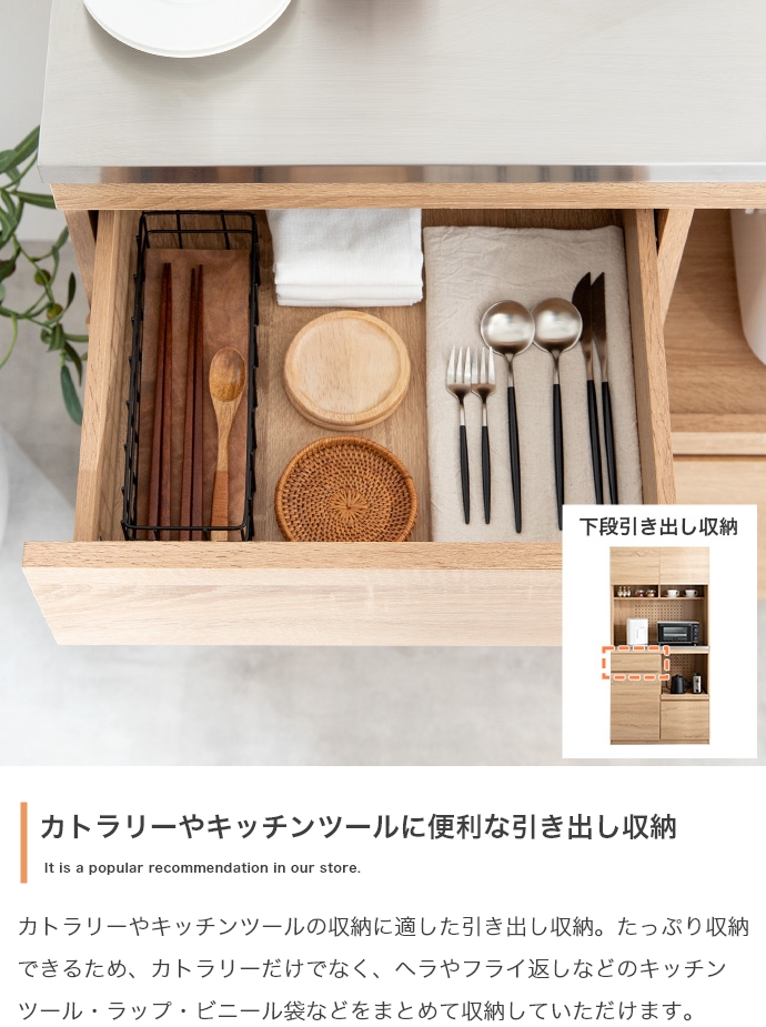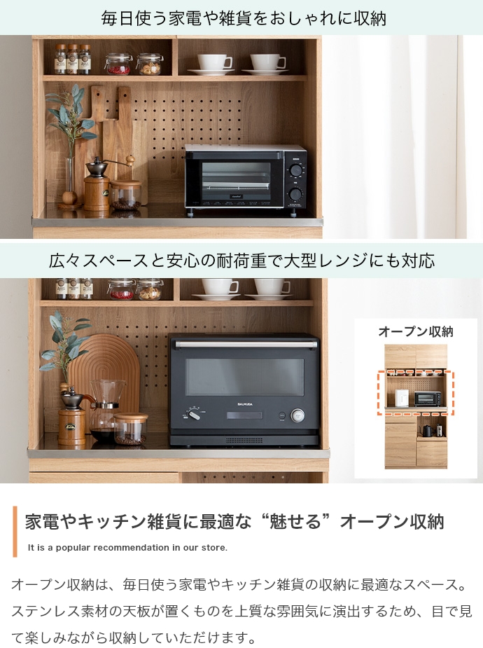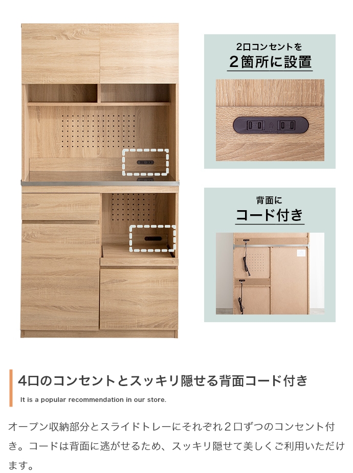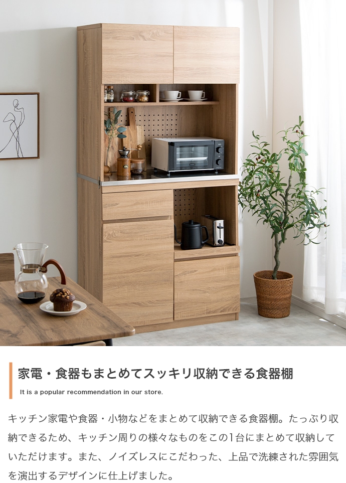 食器棚 家電収納 スライドトレー 幅90cm