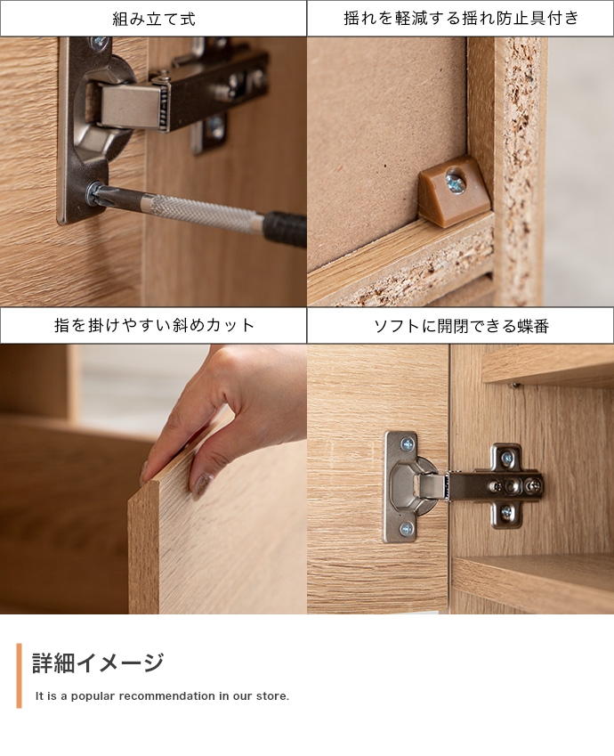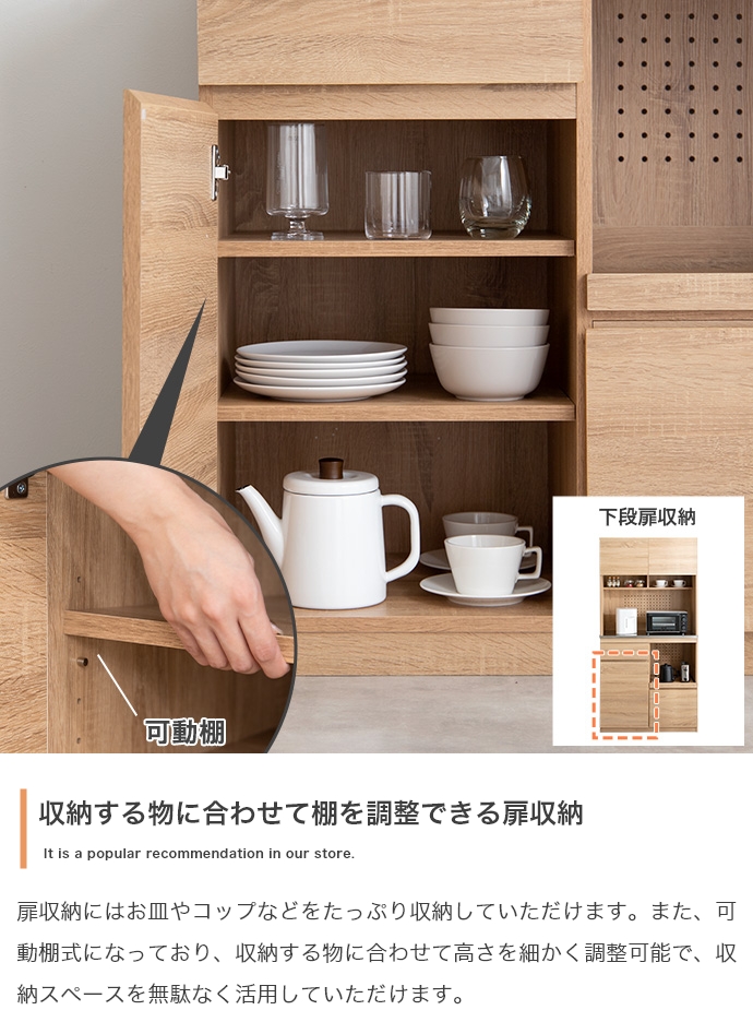 下段扉収納(底板・可動棚):約5kg、下段引き出し収納(右):約8kg |
