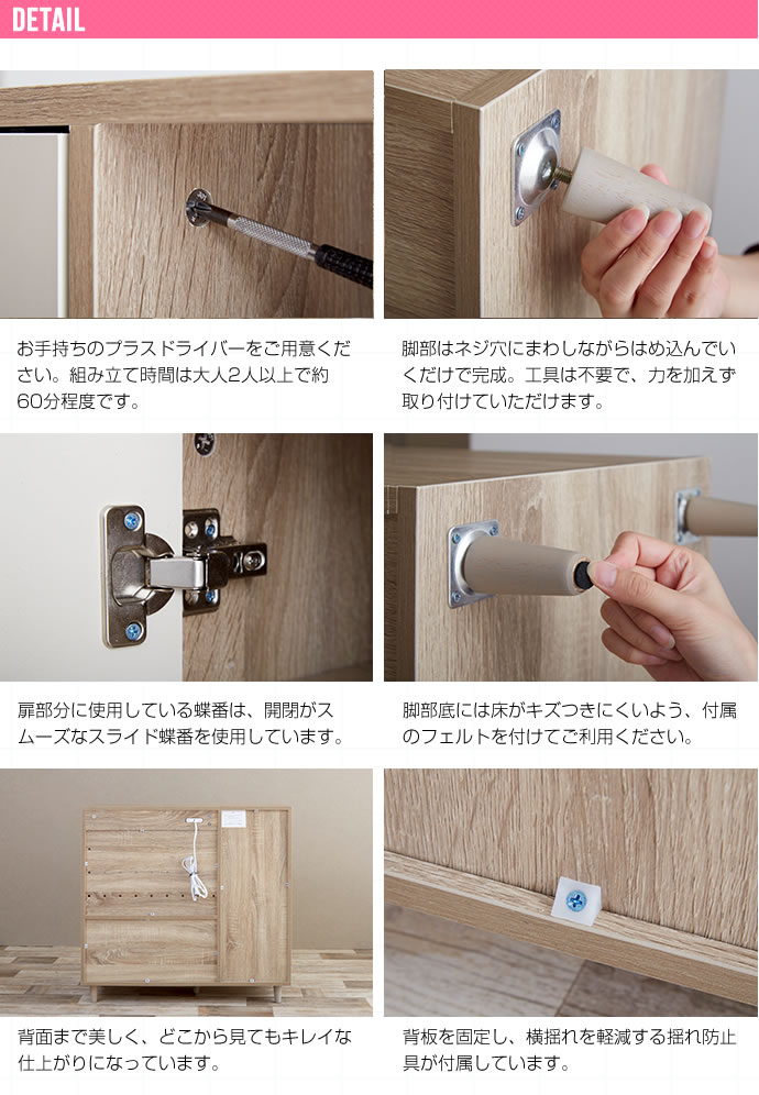 天板:約10kg、可動棚:約3kg、固定棚:約5kg、底板:約5kg |