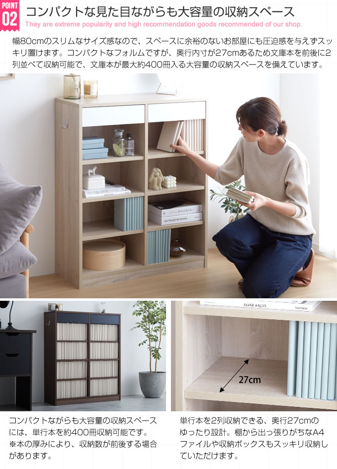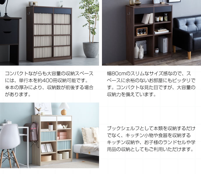 収納棚 キッチン リビング 本 幅80cm コンパクト