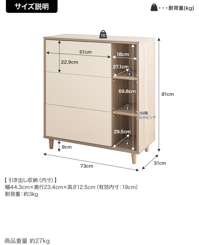 チェスト 脚付き 幅73cm 北欧 コンパクト