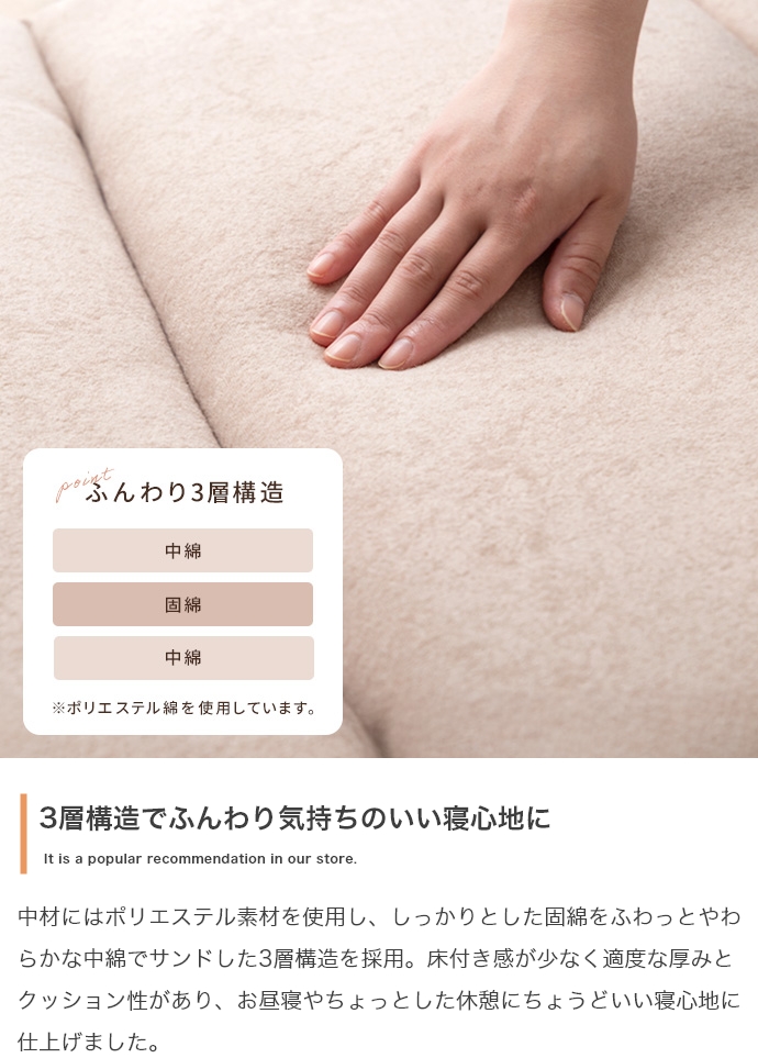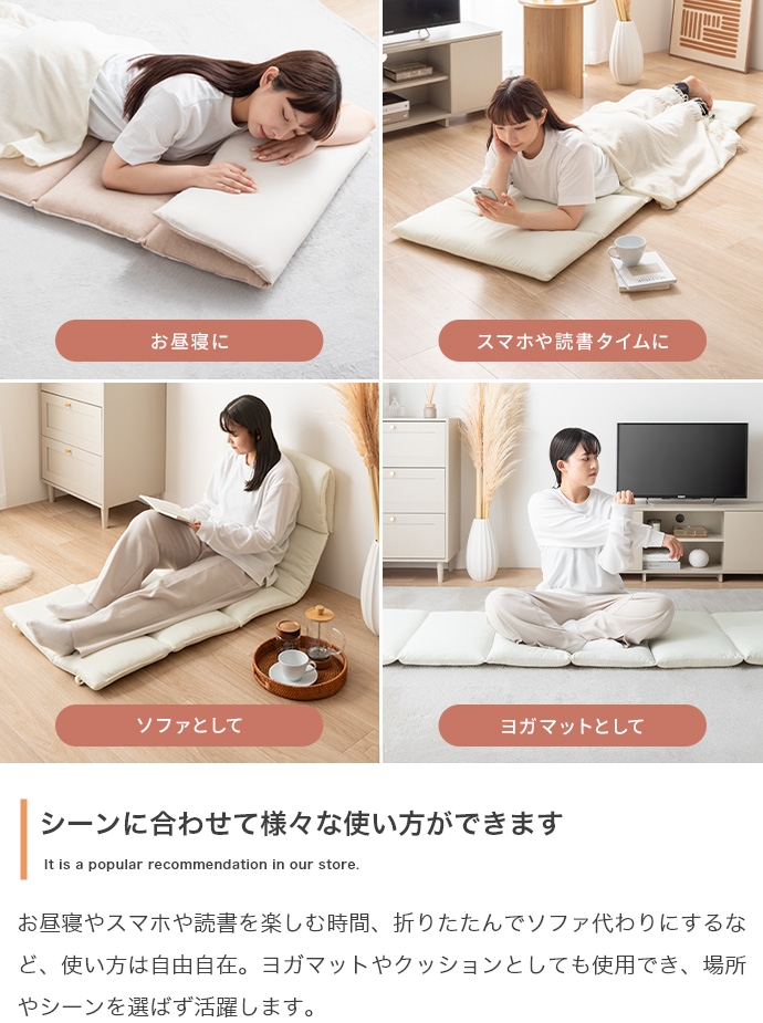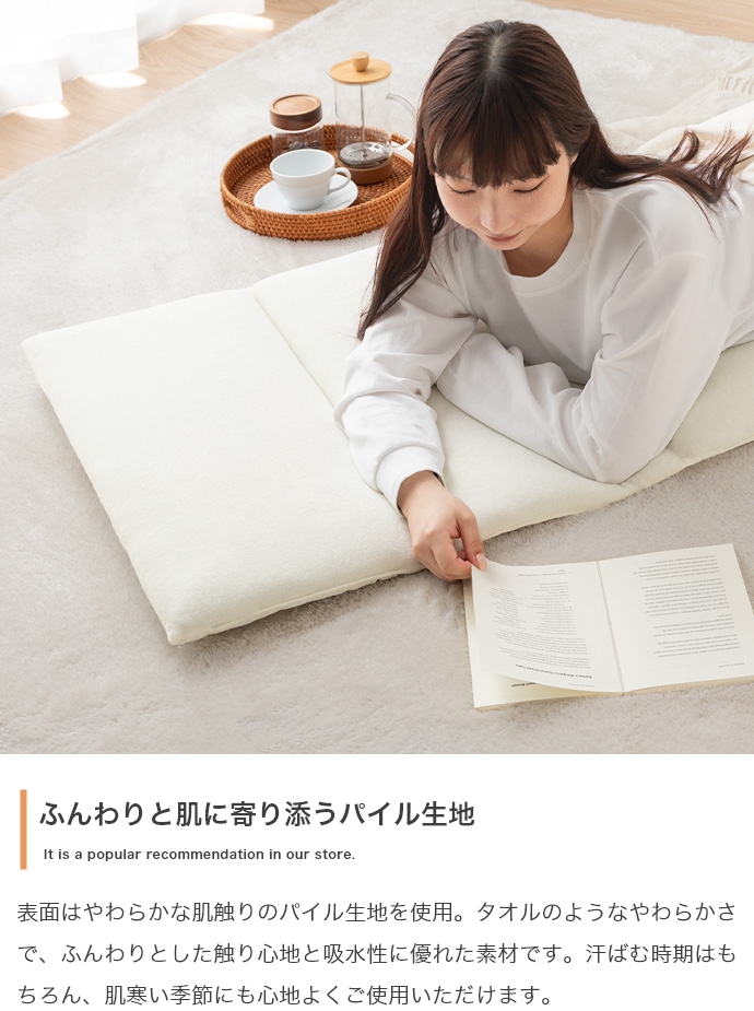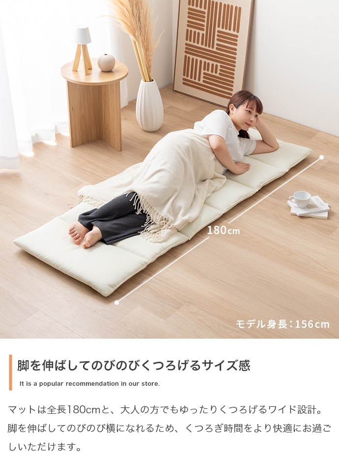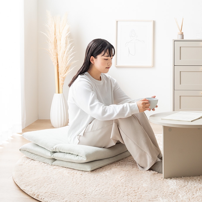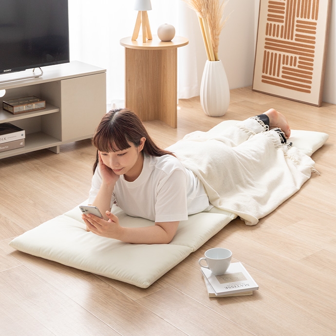 毎日のリラクゼーションタイムを、より心地よい安らぎの時間に変える、こだわりの質感と使い心地のごろ寝マットです。