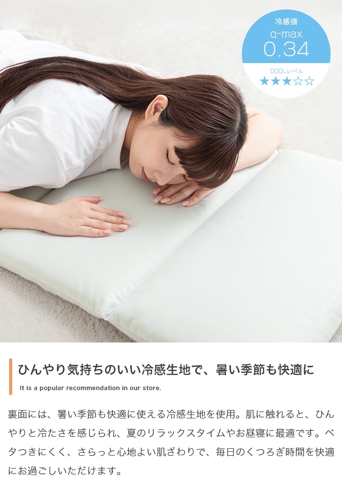 表には肌触りの良いパイル生地、裏にはひんやりとした冷感生地を使用。季節や気分に合わせて両面を使い分けられます。