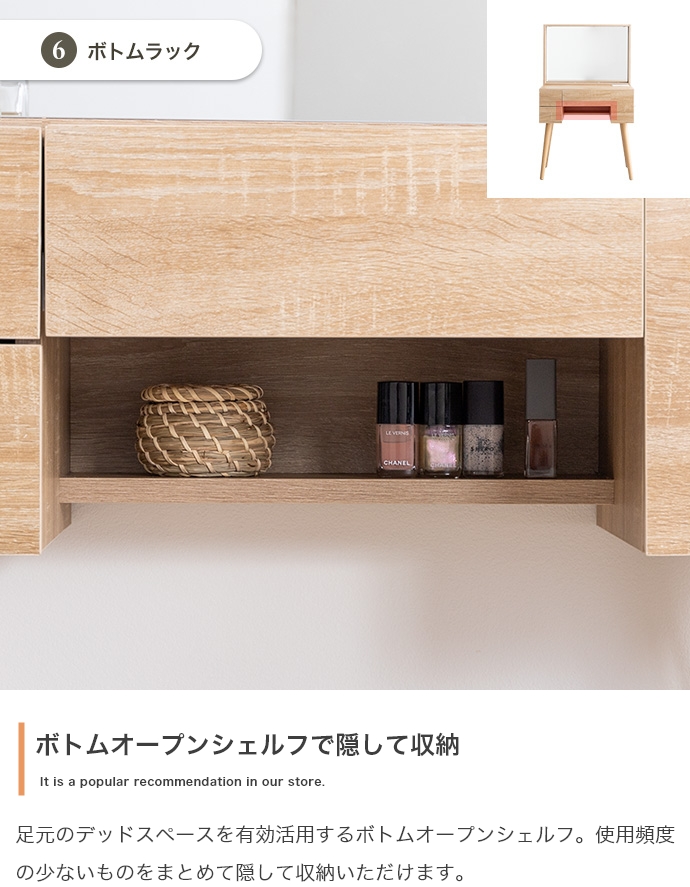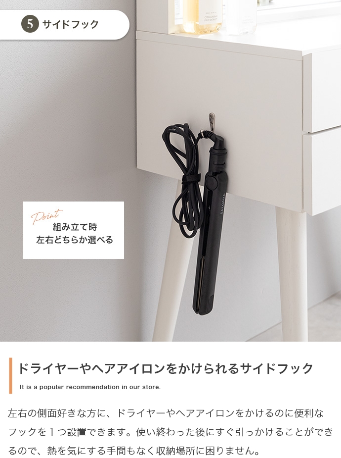ドレッサー空間を自分だけのお気に入りの場所に変え、心安らぐメイク時間をお楽しみいただけます。