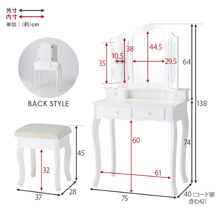 ドレッサー:(約)幅75 × 奥行42 × 高さ138cm