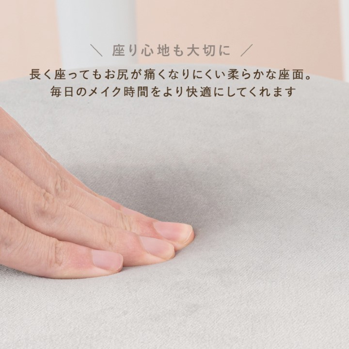 ドレッサーのデザインに合わせたスツールがセットになっているため、インテリアに統一感が生まれ、届いてすぐにご使用いただけます。