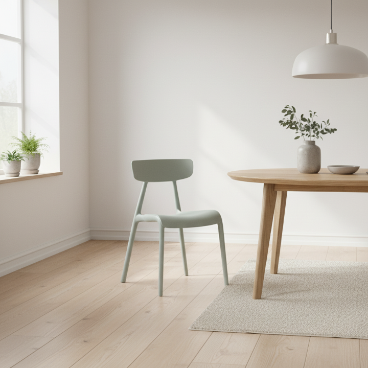 ◆ 軽量&スタッキングで収納もスマート 女性でも片手で持てる軽量設計で、お部屋間の移動やお掃除の際もラクラク。 使わない時は積み重ねて(スタッキング)収納できるため、来客用の椅子としても場所を取らず便利です。