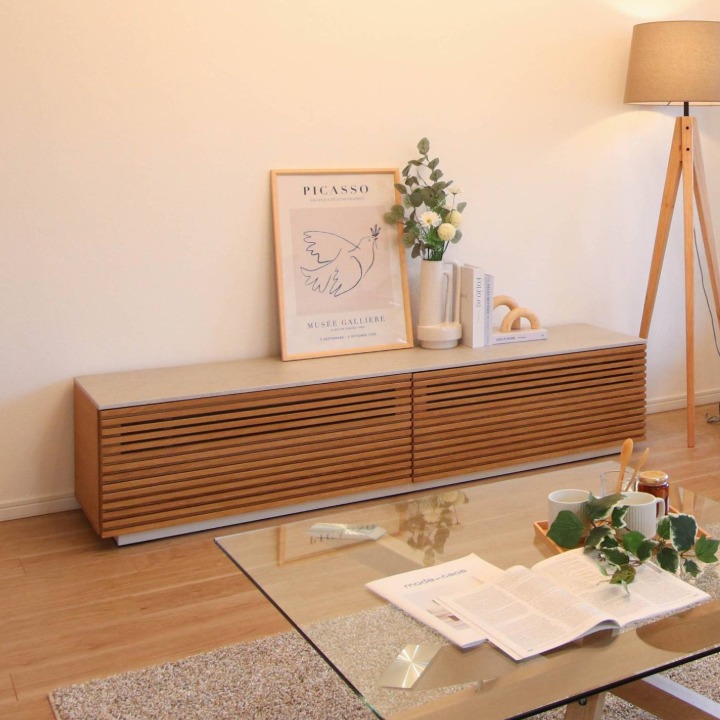 TVボード 細格子デザイン 前板 大型引出し収納 ウォールナット/オーク