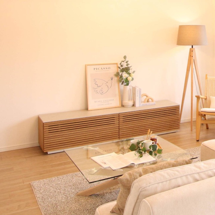 ◆ 横幅の広い引出しで「たっぷり収納」 見た目の美しさだけでなく、収納力も抜群です。 横幅の広い大きめの引出しを備えているため、散らかりがちなDVDやリビング小物などをたっぷりと収納でき、テレビ周りを常にすっきりと保てます。