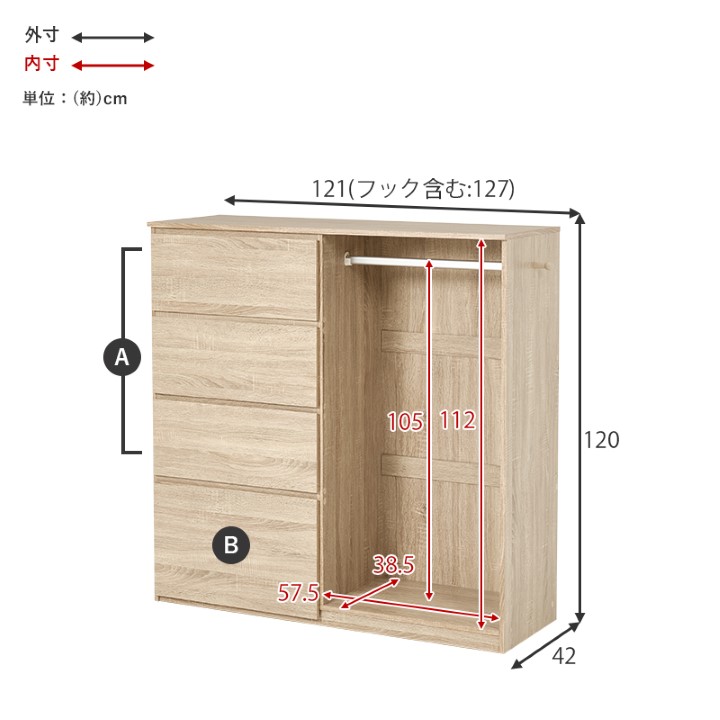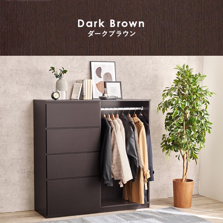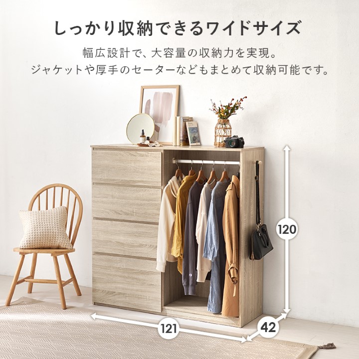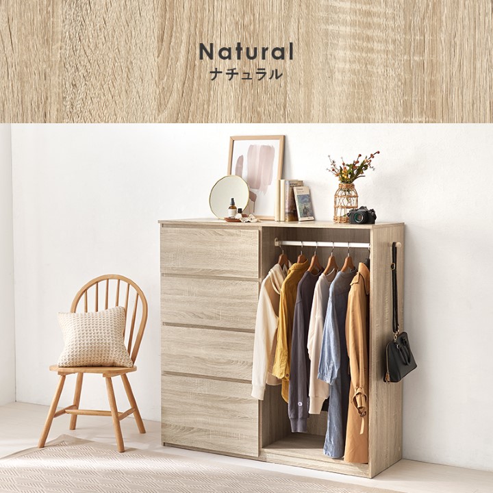 ◆ これ1台で完結する抜群の収納力 大きな引出しとハンガーポールを両方備えており、大量の服や小物をまとめて収納可能です。