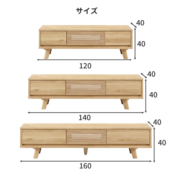 | サイズ | ■幅120cm 約 幅120.5×奥行40×高さ40cm 脚高:14cm ■幅140cm 約 幅140.5×奥行40×高さ40cm 脚高:14cm ■幅160cm 約 幅160.5×奥行40×高さ40cm 脚高:14cm |