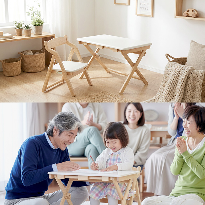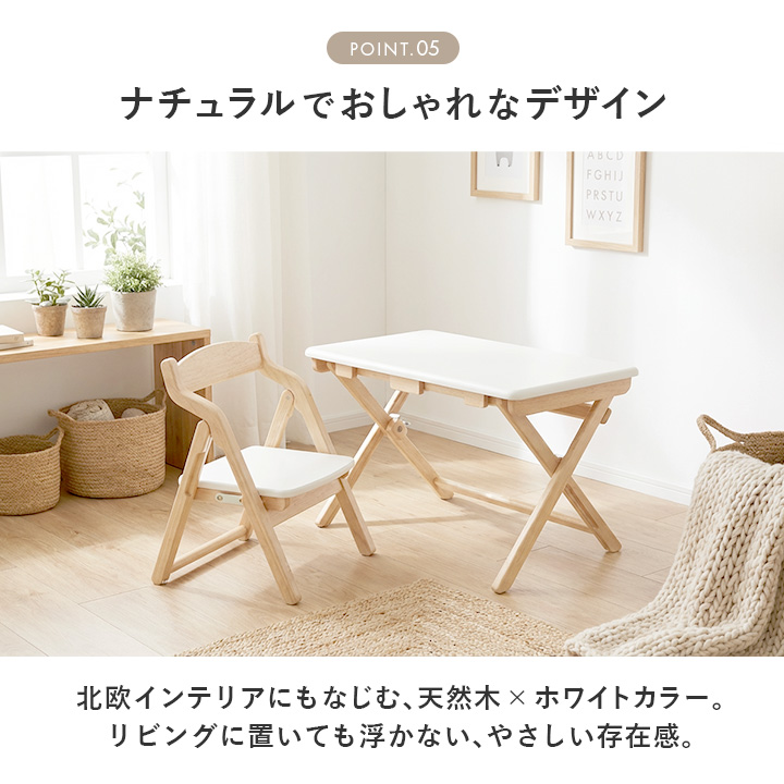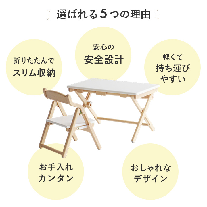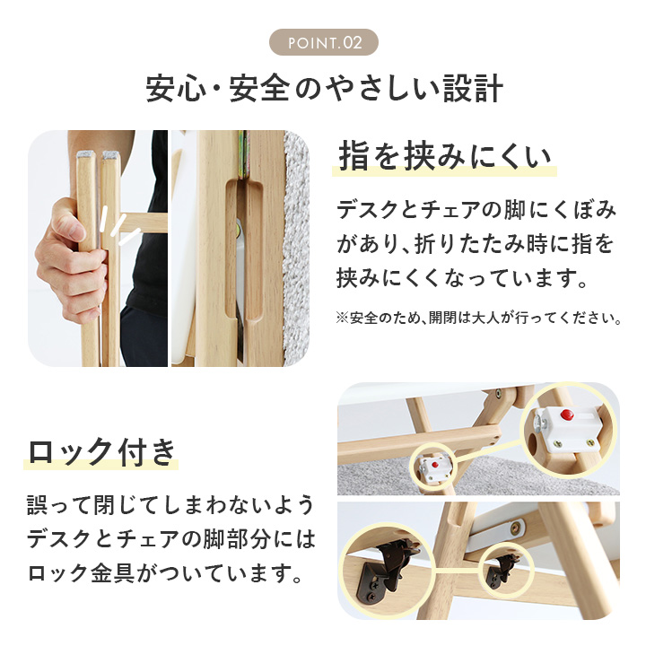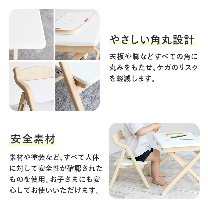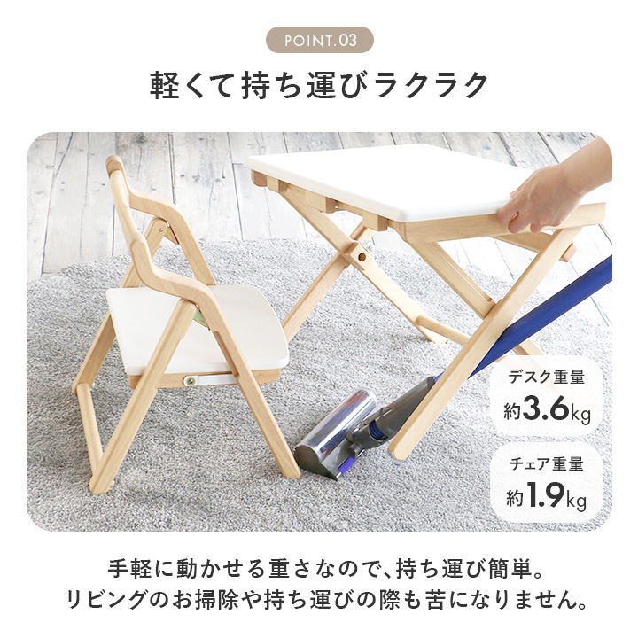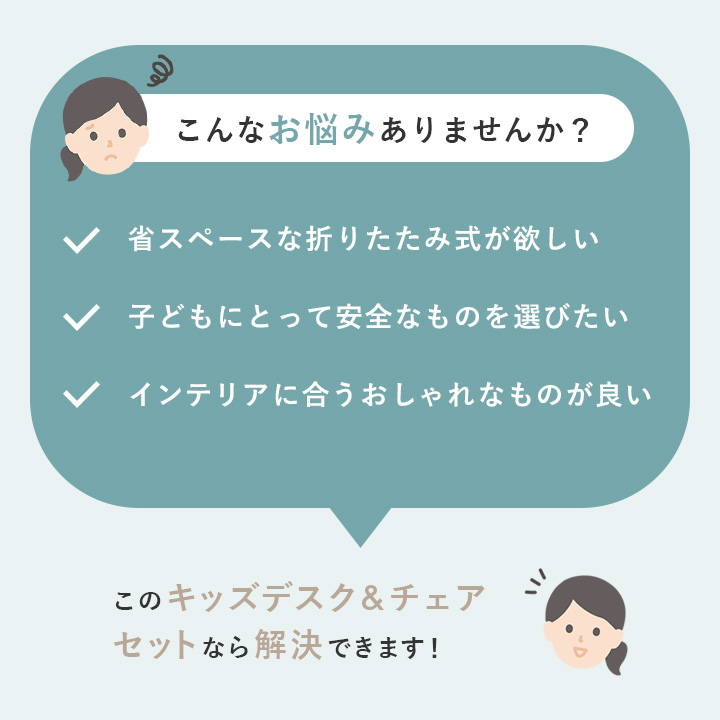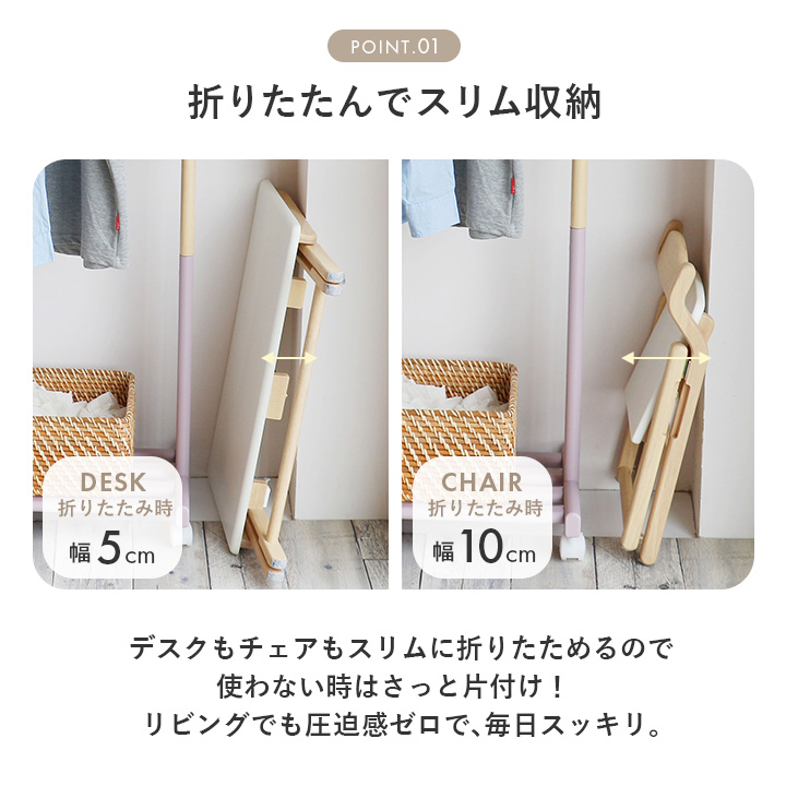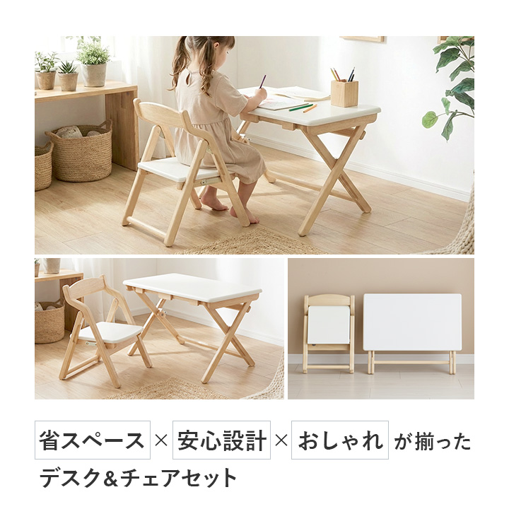 | 備考 | 折りたたみ時 ■デスク 幅5cm ■チェア 幅10cm クローゼットや家具のすき間にすっきり収納でお届け。使わないときはコンパクトに片付けられます。 完成品 折りたたみ式で開閉のみ(開閉は大人の方が行ってください) |