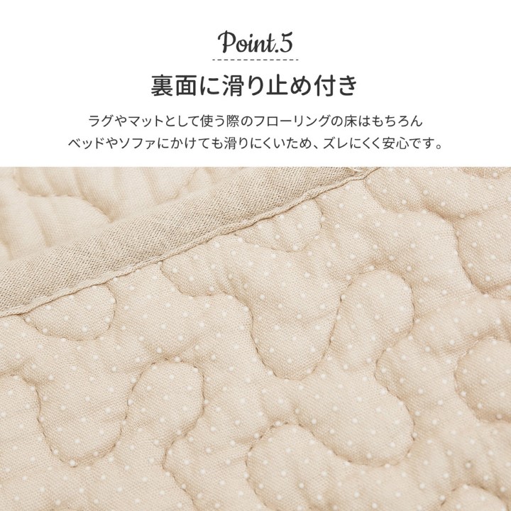| 素材 | 表面:綿100% 中綿:綿、ポリエステル、レーヨン 裏面:綿100% 滑り止め付き |