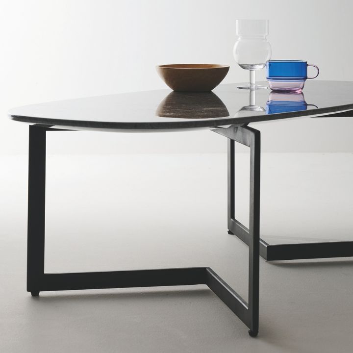 ・エッジの効いた幾何学的なスチール脚が、リビングにモダンで洗練された印象を与えます