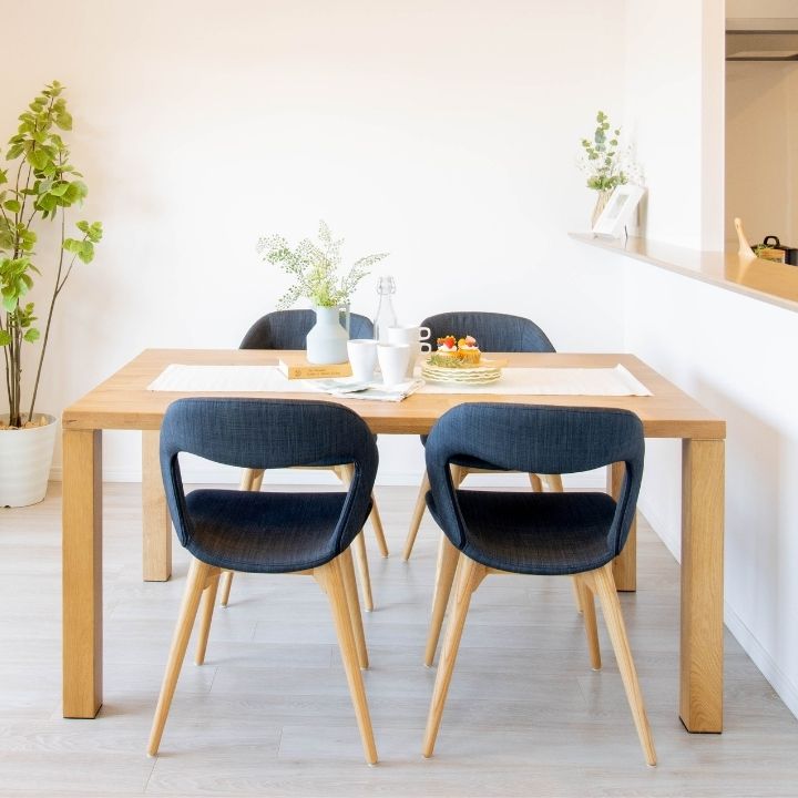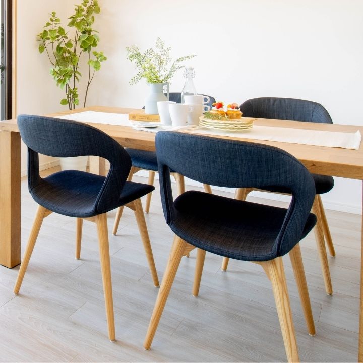 丸いウッドの脚が北欧ナチュラルで、ダイニング空間を柔らかい雰囲気にしてくれます。